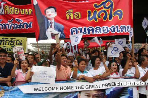 圖:泰國前總理他信結(jié)束海外流亡生活回國