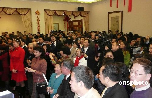中國駐美大使周文重于當?shù)貢r間17日晚在駐美使館華僑華人春節(jié)招待會上致辭時表示,展望處于復(fù)雜而深刻變化的二00九年,中美都面臨機遇和挑戰(zhàn),中方愿與美方一道推動中美關(guān)系穩(wěn)步發(fā)展。當晚的招待會共有七百多名來自一百六十多個僑社的華僑華人出席。中新社發(fā) 覃展鵬 攝