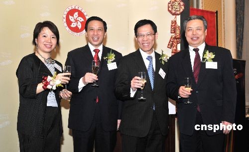 當(dāng)?shù)貢r(shí)間2月4日,香港駐紐約經(jīng)貿(mào)辦事處在華爾道夫酒店舉行新春招待會(huì),中國(guó)常駐聯(lián)合國(guó)代表張業(yè)遂大使,中國(guó)駐紐約總領(lǐng)事彭克玉等四百多位來(lái)賓出席了招待會(huì),香港特區(qū)駐美國(guó)總經(jīng)貿(mào)專員唐智強(qiáng)發(fā)表講話,香港駐紐約經(jīng)貿(mào)辦事處處長(zhǎng)陳美嘉致新春賀詞。中新社發(fā) 龔文謨 攝