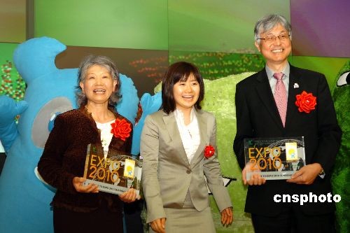 4月11日下午,上海世博組委會在東京舉行“魅力上海,精彩世博——2009日本上海世博推薦周”開幕式。上海市常務(wù)副市長楊雄和上海世博會日本推廣形象大使福原愛共同向“超級世博迷”山田外美代及日本觀光廳長官本保芳明贈送了第一張世博門票。日本家庭主婦山田外美代在2005年愛知世博會期間創(chuàng)下了每天入場、總?cè)雸鰯?shù)達二百四十三次的紀(jì)錄,被日本媒體授予“世博全勤獎”。圖為福原愛(中)與山田外美代(左)、本保芳明(右)在開幕式上。中新社發(fā) 朱沿華 攝