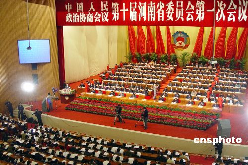 一月十四日上午,河南省政協(xié)十屆一次會議在鄭州開幕。本次會議共歷時八天半,有二十八個界別的八百六十五名委員出席本次會議。中新社發(fā) 李志全 攝