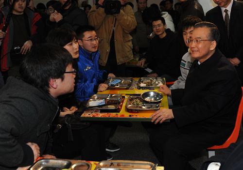 2月15日晚,正在天津調(diào)查研究的中共中央政治局常委、國(guó)務(wù)院總理溫家寶來到南開大學(xué)親切看望大學(xué)生。他勉勵(lì)同學(xué)們要心系國(guó)家,努力學(xué)習(xí),甘于奉獻(xiàn),樹立正確的擇業(yè)觀念。 新華社記者 李學(xué)仁 攝