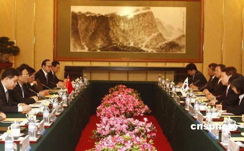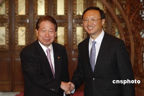 2月24日,中國(guó)外交部部長(zhǎng)楊潔篪在北京釣魚臺(tái)國(guó)賓館與韓國(guó)外交通商部長(zhǎng)官柳明桓舉行會(huì)談。中新社發(fā) 盛佳鵬 攝