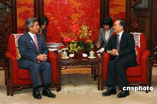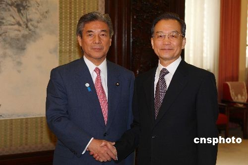 3月1日,中國(guó)國(guó)務(wù)院總理溫家寶在北京中南海紫光閣會(huì)見日本外相中曾根弘文。中新社發(fā) 盛佳鵬 攝