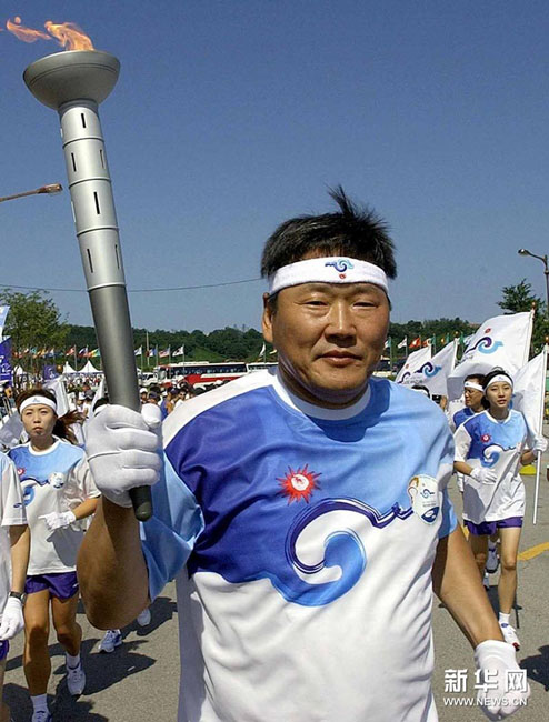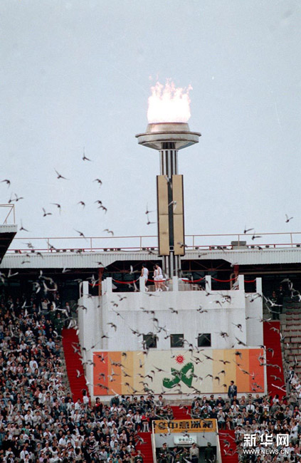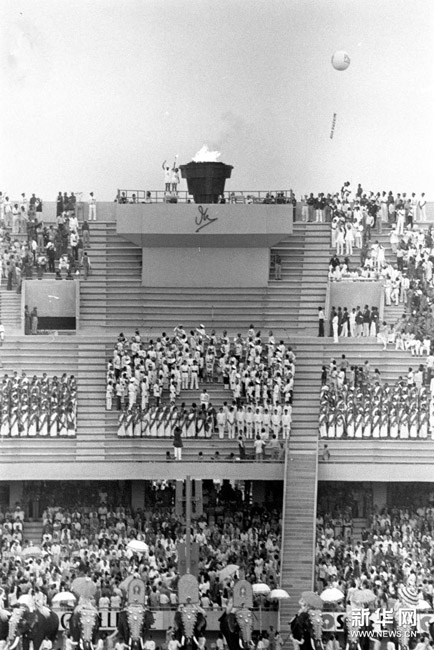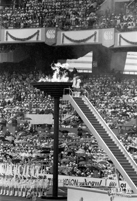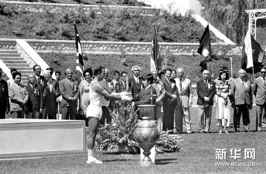 1951年3月4日,在印度新德里莫臥兒王朝第五代國王沙迦罕的王宮紅堡,亞運(yùn)圣火被一面凹鏡聚焦的太陽光引燃,亞運(yùn)會圣火從此熊熊燃燒。接下來的數(shù)十年間,亞運(yùn)圣火一路走過南亞、西亞、東亞,亞運(yùn)精神也得到了完美詮釋。在廣州亞運(yùn)會圣火即將傳遞之際,讓我們回眸歷史上亞運(yùn)圣火留下的永恒瞬間。這是1974年8月31日,第七屆亞運(yùn)會火炬點(diǎn)燃儀式在德黑蘭沙達(dá)巴德宮舉行。伊朗王儲禮薩·巴列維(前右)點(diǎn)燃火炬后,交給伊朗著名運(yùn)動員帕伊馬尼。圖片來源:新華網(wǎng)
