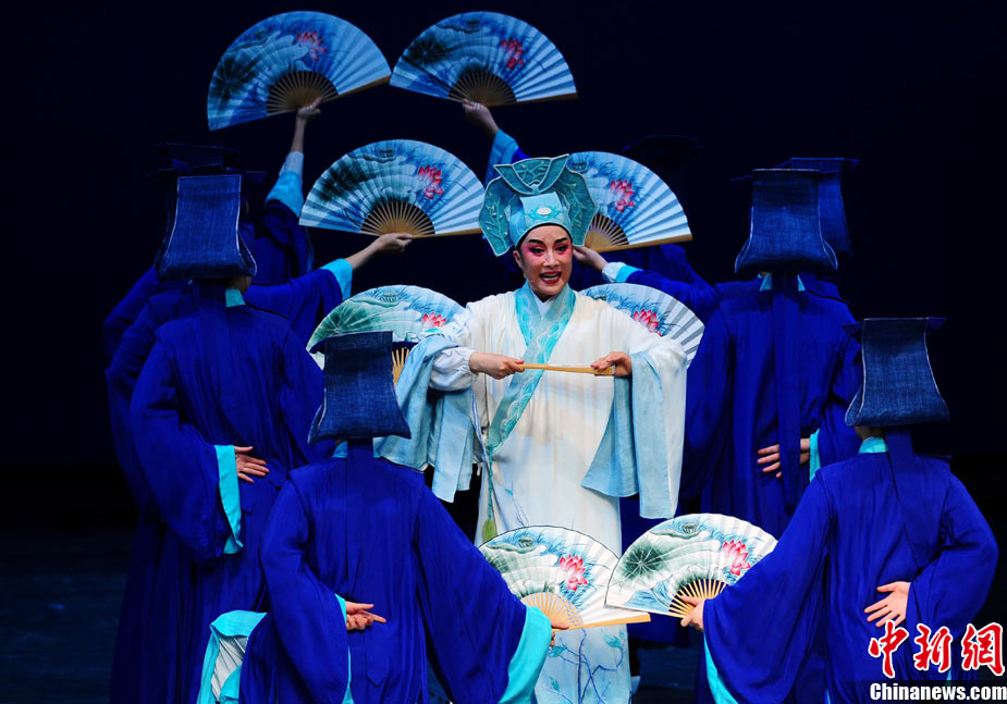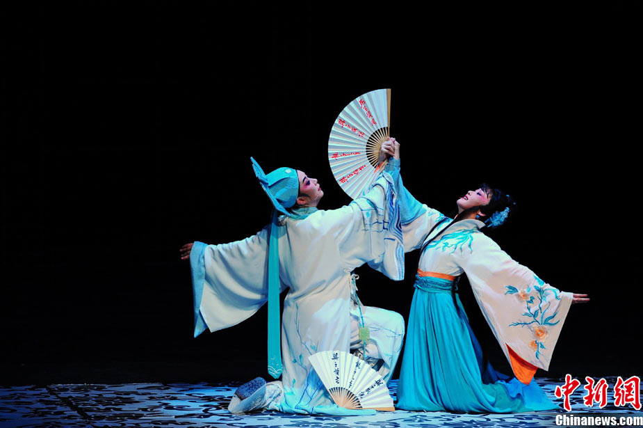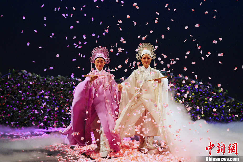 11月23日晚間,由浙江小百花越劇團(tuán)帶來的新版越劇《梁山伯與祝英臺(tái)》在北京國家大劇院上演,著名越劇表演藝術(shù)家茅威濤等人的精彩演出再現(xiàn)了這出中國經(jīng)典的凄美愛情故事。中新社記者 侯宇 攝