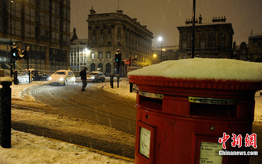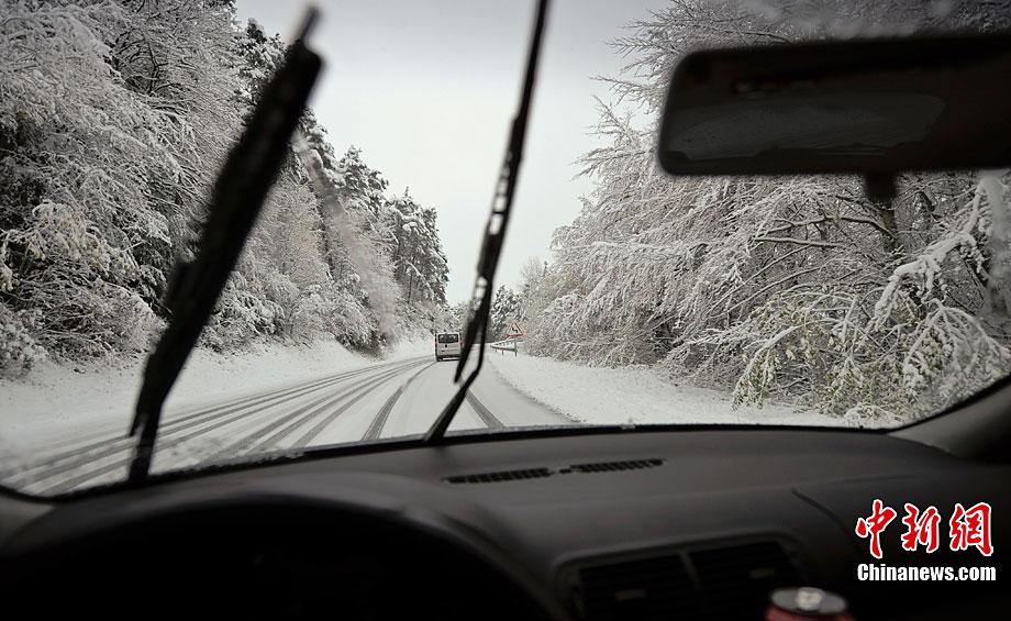 歐洲廣大地區(qū)受到嚴寒天氣侵襲,其中英國提早降下今冬第一場雪,是17年來最大的初雪,部分地區(qū)更刮起暴風雪,最低氣溫達零下17攝氏度,居民生活和交通大受影響。法國、比利時、荷蘭、丹麥、德國、波蘭以至白俄羅斯均出現(xiàn)暴風雪,預計西班牙北部也會下雪。圖為11月29日,英格蘭北部紐卡斯爾,汽車行駛在大雪覆蓋的道路上。