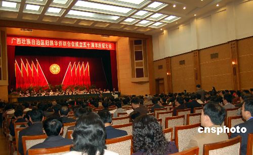 十一月二十八日,廣西壯族自治區(qū)歸國(guó)華僑聯(lián)合會(huì)成立五十周年慶祝大會(huì)在南寧舉行。東盟各國(guó)、美國(guó)和港澳等近二十個(gè)國(guó)家和地區(qū)的華人華僑代表和廣西各界人士共四百人出席大會(huì),中國(guó)僑聯(lián)副主席李祖沛在會(huì)上講話,中共廣西區(qū)委員會(huì)書(shū)記劉奇葆發(fā)信祝賀。中新社發(fā) 劉萬(wàn)強(qiáng) 攝