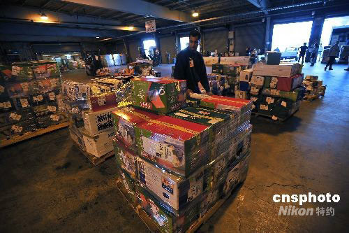 當?shù)貢r間5月28日,美國硅谷華人工程師將向四川地震災區(qū)捐贈的2000多頂帳篷、1000多個睡袋等賑災物資交付美國聯(lián)合航空公司,這批賑災物資將先運往北京首都國際機場,然后再轉(zhuǎn)運四川災區(qū)。中新社發(fā) 陳剛 攝