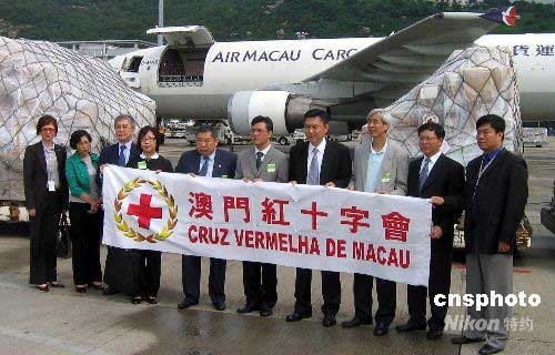 圖:澳門捐助的第二批救災(zāi)物資空運(yùn)入川