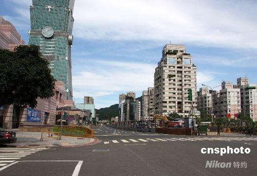 8月28日下午二時半至三時,臺北市舉行“萬安演習”,車輛行人凈空。圖為原本車輛和行人繁忙的世貿(mào)中心大街一帶道路上空無一人。中新社發(fā) 陳立宇 攝