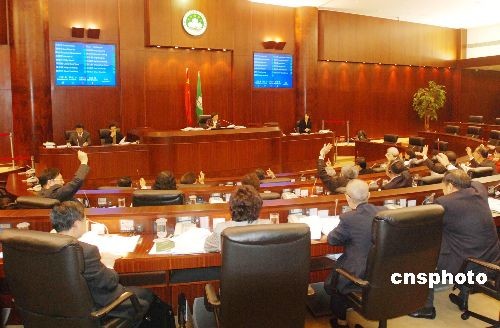 澳門立法會二月二十五日下午經細則性討論后,高票通過了《維護國家安全法》。圖為法案通過后,議員們紛紛舉手發(fā)言。中新社發(fā) 畢永光 攝