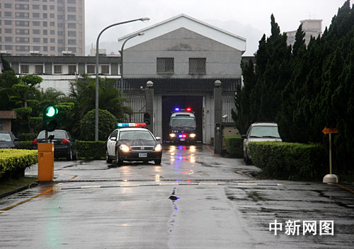 2月26日是臺(tái)北地方法院連續(xù)三天庭審陳水扁,進(jìn)行準(zhǔn)備程序庭的最后一天。圖為今天早上八時(shí)三十五分許,臺(tái)北看守所的鐵門打開(kāi),押著陳水扁的囚車在陰雨中準(zhǔn)備開(kāi)出看守所,前往地院出庭。中新社記者 陳立宇 攝