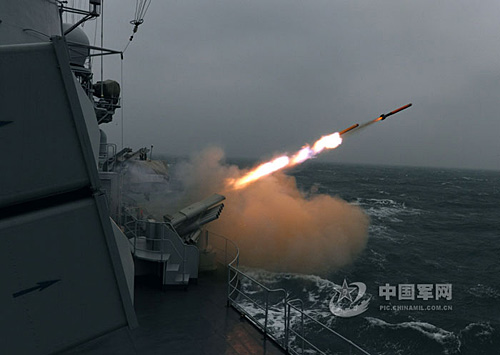 北海艦隊(duì)某驅(qū)逐艦支隊(duì)在新年度訓(xùn)練中,嚴(yán)格按新大綱要求,對(duì)艦艇進(jìn)行分級(jí)分類,科學(xué)組訓(xùn),對(duì)基礎(chǔ)科目訓(xùn)練合格的艦艇及時(shí)轉(zhuǎn)入海上使用武器訓(xùn)練。2月中旬第一批3艘艦艇分別完成了火炮、火箭彈等武器的實(shí)彈射擊,并取得良好成績(jī)。圖為112艦發(fā)射電子干擾火箭的情景。王松岐 攝