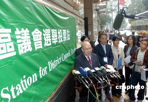 ·香港區(qū)議會選舉舉行 曾蔭權(quán)吁市民踴躍投票(圖)