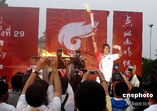 圖:北京奧運圣火在曼谷傳遞順利結(jié)束 (2)