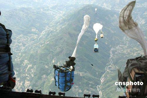 圖:中國空軍向四川災區(qū)空投帳篷成功(2)