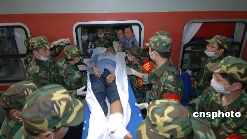 組圖:地震災(zāi)區(qū)首趟運送傷員專列順利抵達重慶