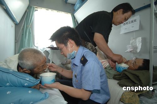 2008年5月19日,按照鐵道部的統(tǒng)一部署,成都鐵路局開行首趟運(yùn)送地震災(zāi)區(qū)受傷群眾專列,19日1O:20從綿陽(yáng)發(fā)車,當(dāng)日16:57到達(dá)重慶北站。運(yùn)送了206名地震受傷群眾及家屬前往重慶接受治療。該次專列專列車次為57005/6/5次路用傷員列車,編組19輛,全部為25G空調(diào)硬臥車。其中硬臥15輛并配備餐車及行李車!