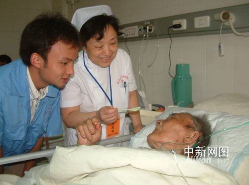 24日晚18點,長途轉運到武漢大學中南醫(yī)院的90歲的老人,多發(fā)肋骨骨折,沒有家屬陪伴,醫(yī)院的老護士和志愿者一口一口地喂他吃著醫(yī)院免費提供的晚餐。據(jù)了解,該院為全部轉運到該遠的38位四川災區(qū)病人免費提供了衣、食、住,讓他們能享受到最好的醫(yī)療服務。