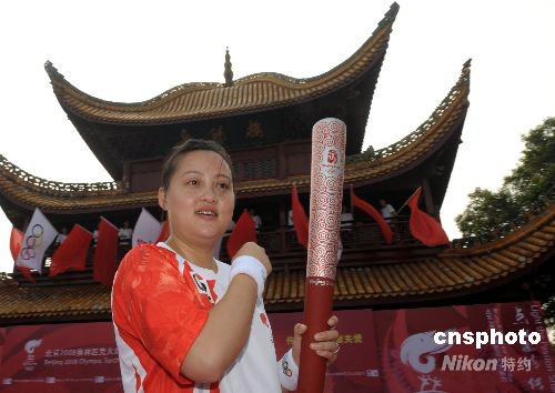 圖:奧運(yùn)冠軍龔智超岳陽(yáng)樓前傳遞奧運(yùn)圣火