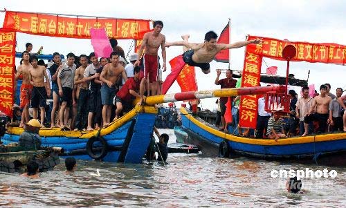 圖:端午節(jié) 兩岸人民在石獅海上捉鴨(2)