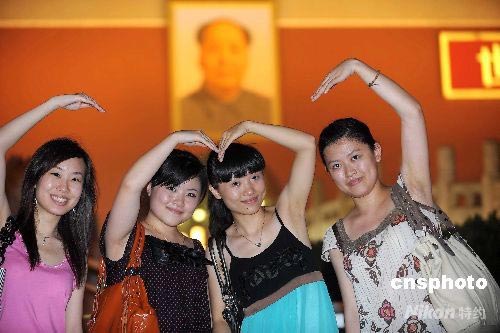 7月27日晚,游人在北京天安門(mén)廣場(chǎng)游覽。北京奧運(yùn)會(huì)開(kāi)幕日益臨近,中外游客紛紛走進(jìn)北京感受奧運(yùn)氣息。 中新社發(fā) 陳文 攝