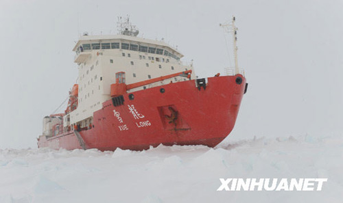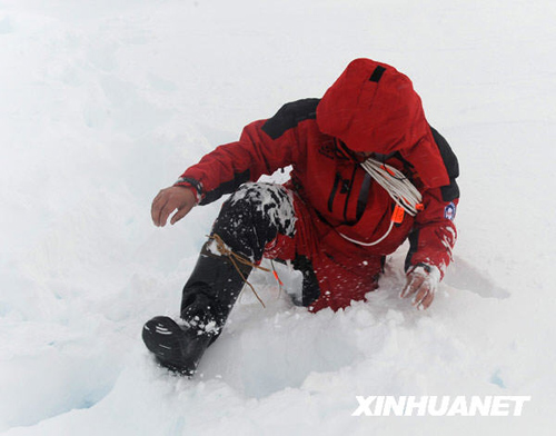 由于南極大陸周圍多年未化的“老冰”和剛剛結(jié)成的“新冰”混合一起,堵死了“雪龍”號前進的航線,25日晚6時,“雪龍”號有關(guān)負責人決定由船上隊員組成探冰隊下船察看冰情。