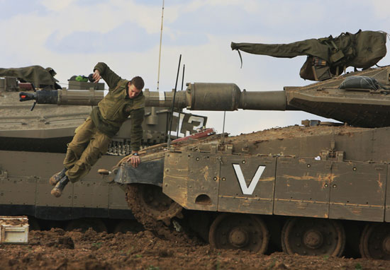12月31日,在加沙邊境地區(qū),以軍集結(jié)大量坦克和士兵。圖為一名以軍士兵正從一輛坦克上跳下。目前,面對國際社會巨大壓力,以色列仍然拒絕停止對加沙地帶的大規(guī)模空襲。