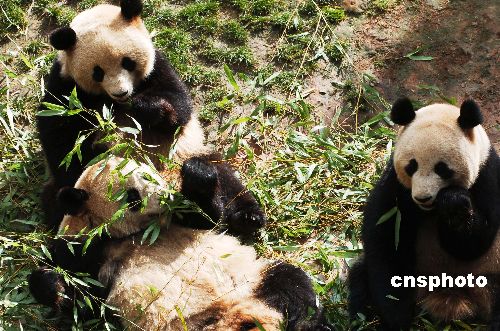三只來自地震災(zāi)區(qū)四川臥龍的熊貓寶寶思嘉、美茜、芊芊,經(jīng)過云南野生動物園半年的精心照料,已適應(yīng)當(dāng)?shù)氐臍夂颦h(huán)境,成長健康,與園內(nèi)原有的兩只大熊貓歡歡和南南共同迎接新年的到來。