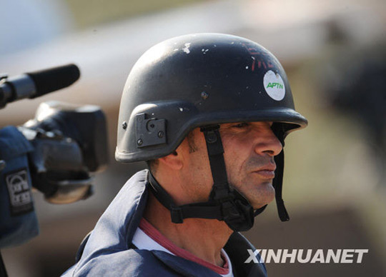 1月4日,一名頭戴鋼盔、身穿防彈衣的記者在加沙邊境地區(qū)的一座小山上眺望加沙北部地區(qū)。自以色列2008年12月27日開始空襲加沙地區(qū)以來,來自世界各地的數(shù)百名記者匯聚巴以地區(qū)進(jìn)行報(bào)道。