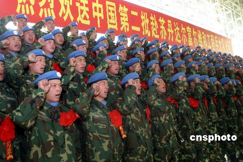 2009年1月10日,在濟南國際機場,有關部門為中國第二批赴蘇丹達爾富爾維和工程兵大隊第一梯隊153名官兵舉行了歡送儀式。據(jù)悉,此次擔任維和任務的官兵主要來自濟南軍區(qū)和北京軍區(qū),他們將擔負修建和維護道路、橋梁、建筑物、停機坪和防御工事,勘察水源、鉆井、修建取水輔助設施等工程保障任務。