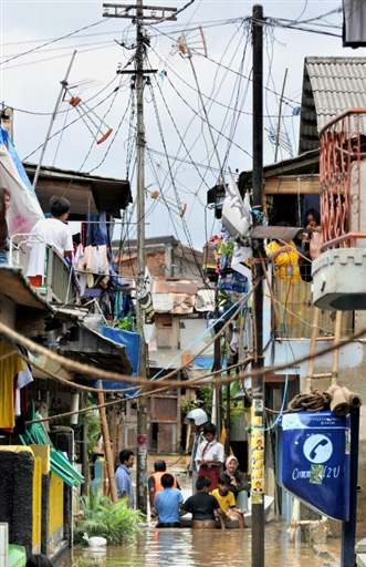 圖:印尼遭遇暴雨襲擊 洪水淹沒(méi)街道(3)