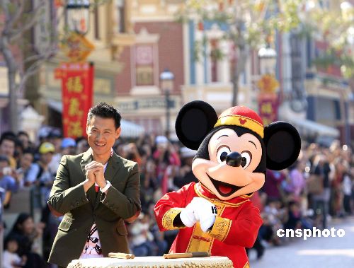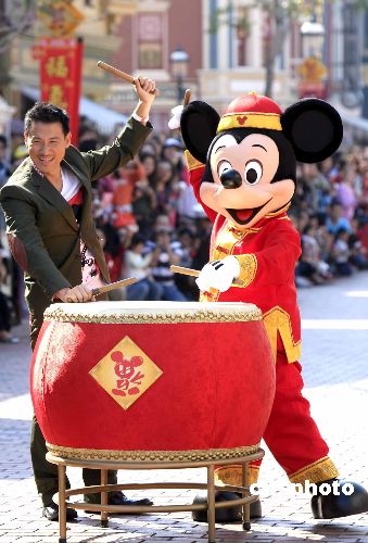 圖:張學友與卡通米奇香港迪士尼為來賓賀新年——中新網(wǎng)
