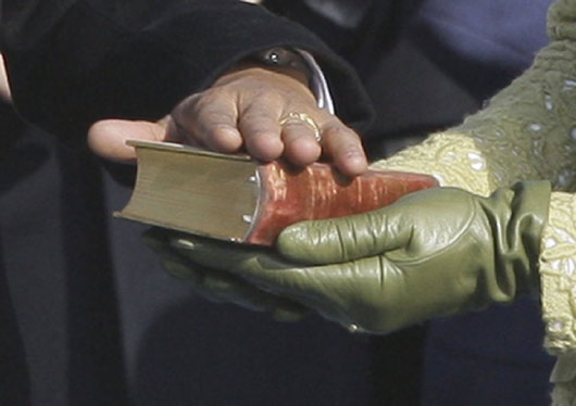 1月20日,美國當選總統(tǒng)奧巴馬在美國國會大廈西側的露天平臺上正式宣誓就任美國第44任總統(tǒng),他宣誓所用的圣經是林肯總統(tǒng)所用的。林肯是一百五十多年前結束美國黑奴歷史的總統(tǒng)。