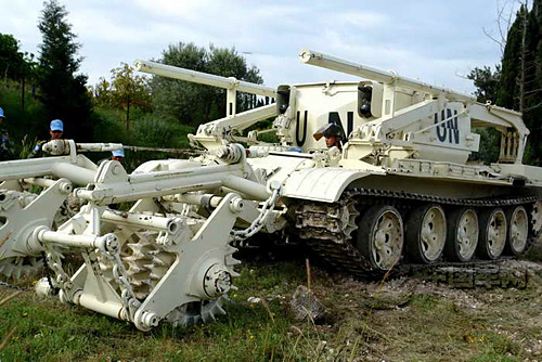 以成都軍區(qū)駐滇某工兵團(tuán)為主組建的我赴黎巴嫩維和工兵營(yíng)官兵使用的綜合掃雷車
