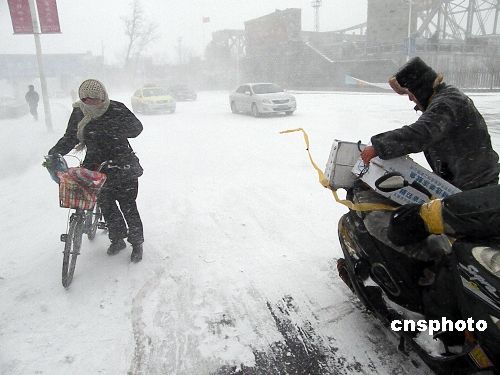 1月22日,大雪和寒潮讓遼寧東部邊境城市丹東第一次領(lǐng)略了入冬以來的第一次大規(guī)模中等強(qiáng)度的降雪和6級偏北風(fēng)。從21日夜間開始一場“蓄謀已久”大雪降臨遼寧大部,氣溫也隨之下降。受降雪影響,遼寧省內(nèi)多條高速封閉,給市民出行和春運(yùn)帶來了一定的影響。中新社發(fā) 陳浩浩 攝