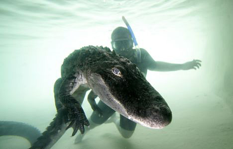 圖:美國男子無任何保護措施“與鱷共舞”(3)