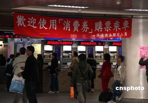 圖:臺北車站可使用消費(fèi)券購火車票——中新網(wǎng)