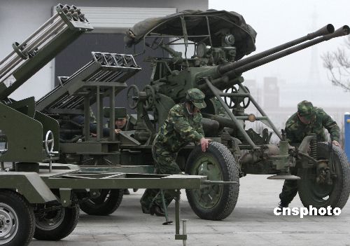 2月1日傍晚,河南洛陽(yáng)孟津縣人工影響天氣作業(yè)基地的工作人員移動(dòng)高炮和火箭發(fā)射架進(jìn)入作業(yè)狀態(tài)。當(dāng)晚11:50及2日凌晨5:00,除偃師市和汝陽(yáng)縣因天氣條件不具備而沒(méi)有實(shí)施作業(yè)外,其他7縣均實(shí)施了多批次人工增雨雪作業(yè),共發(fā)射火箭彈120枚,炮彈200發(fā),作業(yè)區(qū)內(nèi)普降小雨,有效緩解了當(dāng)?shù)厣只痣U(xiǎn)等級(jí),也使旱情得到了些許緩解。中新社發(fā) 張曉理 攝