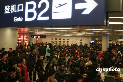 2月2日,牛年春節(jié)后首場濃霧籠罩川西大地。成都雙流國際機場受濃霧襲擊發(fā)布了三級預警信號,機場關(guān)閉達四個多小時,直接造成一百二十一個進出港航班延誤,并導致十個進出港航班取消,來自新加坡、浦東的個別進港航班分別備降昆明、重慶,同時致使近一點三萬名旅客受阻于機場。中新社發(fā) 呂俊明 攝