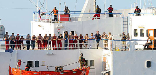 圖:索馬里海盜接受贖金后釋放烏克蘭軍火船(2)——中新網(wǎng)