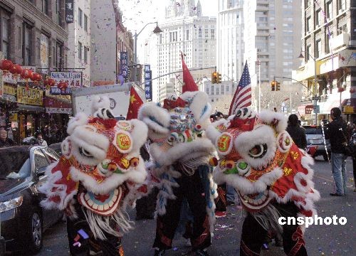 圖:紐約中國(guó)城醒獅游街鬧元宵——中新網(wǎng)