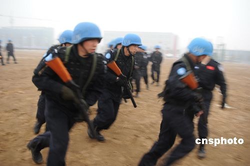 圖:中國(guó)赴海地維和警察防暴隊(duì)冒雨訓(xùn)練(3)——中新網(wǎng)