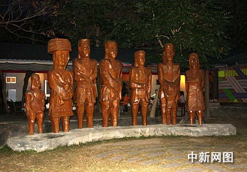 圖:臺東縣布農(nóng)部落反映原住民生活的木雕——中新網(wǎng)