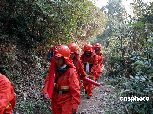 截至2月13日上午10點(diǎn)30分,福建沙縣山林火災(zāi)的明火得到總體控制,但參加撲救火災(zāi)的各方人員仍在和當(dāng)?shù)厝罕娨黄鹧采,?yán)防死灰復(fù)燃。12日12時(shí)30左右,福建沙縣高砂鎮(zhèn)端溪村突發(fā)森林火災(zāi),由于風(fēng)大,火勢(shì)迅速蔓延,已燒毀山林二千余畝。中新社發(fā) 穆長(zhǎng)梓 攝