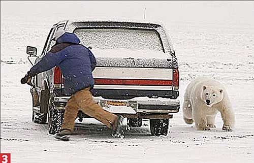 美國阿拉斯加州一名男子在大雪天駕車出行時,不慎遇到一只強壯的北極熊。這只北極熊饑餓難耐,想拿這名男子當(dāng)“晚餐”,于是北極熊和這名男子在雪地里繞著車展開一場“貓捉老鼠”的驚險游戲。最終男子成功擺脫了北極熊的追逐,死里逃生。