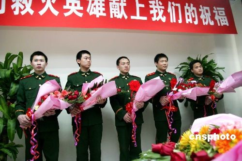 2月17日,在撲救2月9日晚央視新址北配樓大火中受傷的5名消防官兵,在北京朝陽醫(yī)院的救治下康復(fù)出院,醫(yī)院醫(yī)護人員舉行了簡短而隆重的歡送儀式,為消防官兵送上祝福。目前,因吸入有毒有害、高溫氣體造成肺部嚴重損傷的消防中隊長張少輝仍需留院觀察。