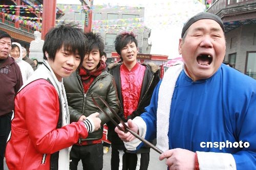 圖:花兒樂隊(duì)向“叫賣大王”學(xué)“叫賣”(4)——中新網(wǎng)