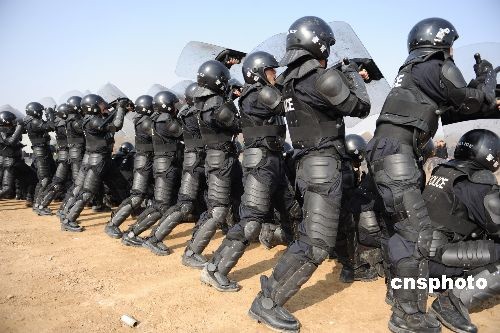維和防暴隊(duì)員在進(jìn)行處置群體性事件演練。 中新社發(fā) 由永懷 攝